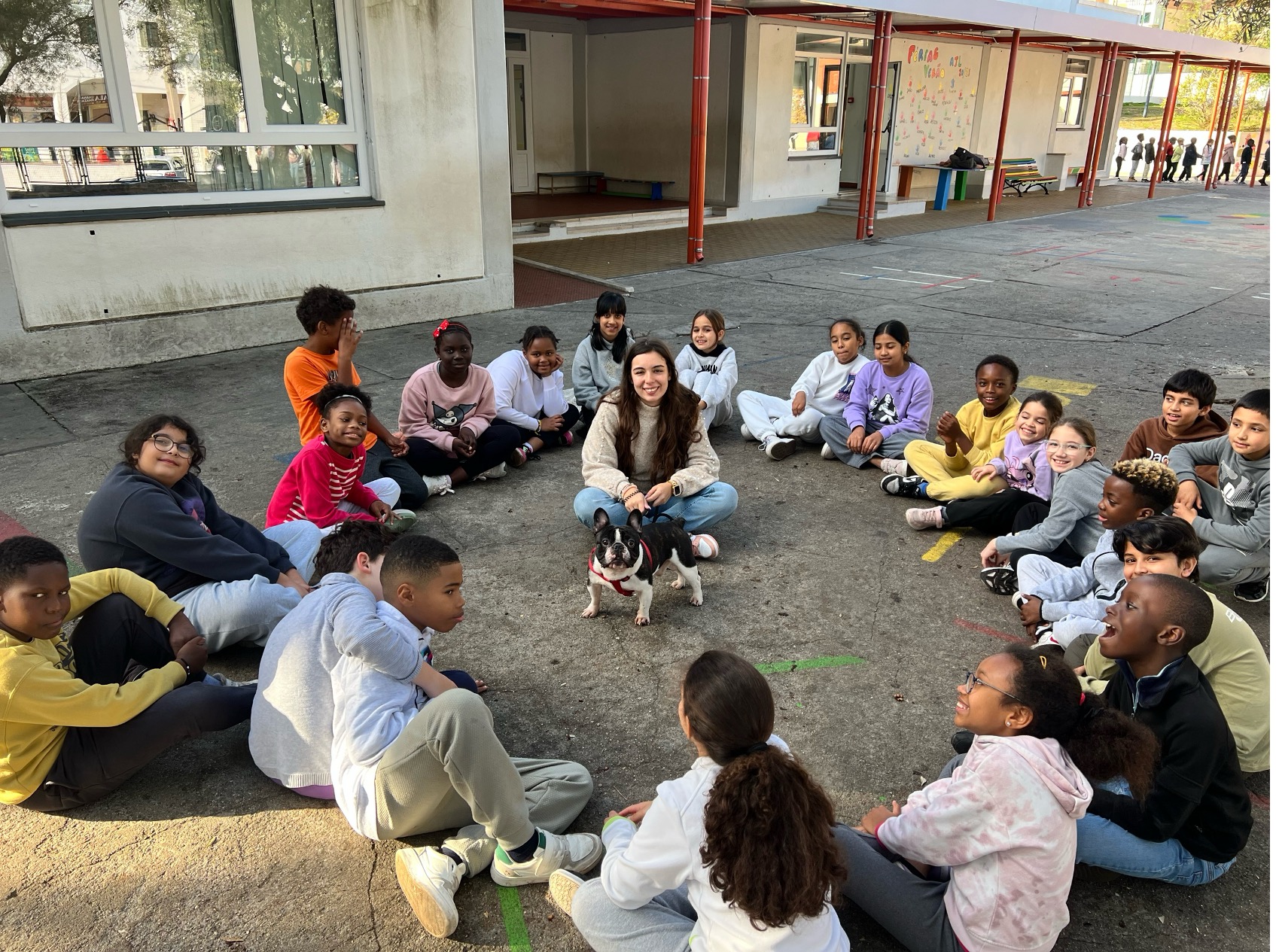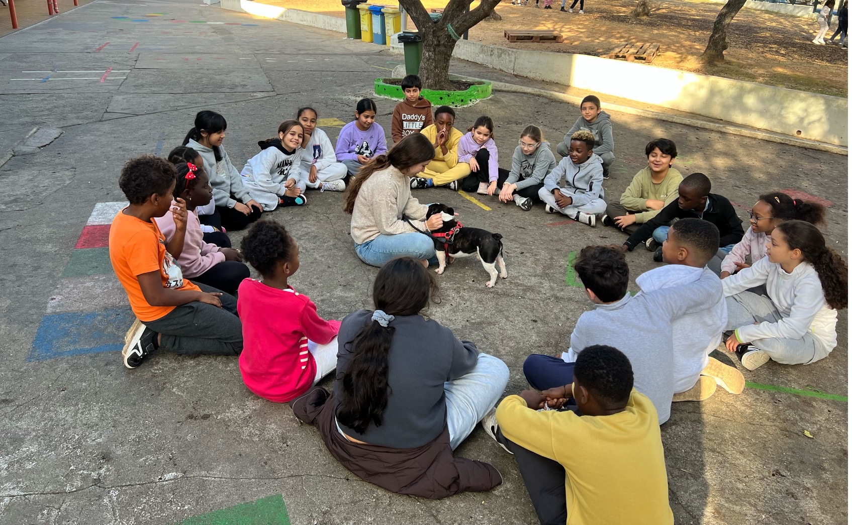 No exterior da escola, realizámos uma atividade sobre os cuidados importantes a ter com os cães. Falámos sobre alimentação, higiene, passeios e a necessidade de dar amor e atenção aos animais de estimação. Também refletimos sobre o problema dos maus-tratos e sobre como é essencial respeitar, proteger e denunciar qualquer forma de violência contra os animais.
