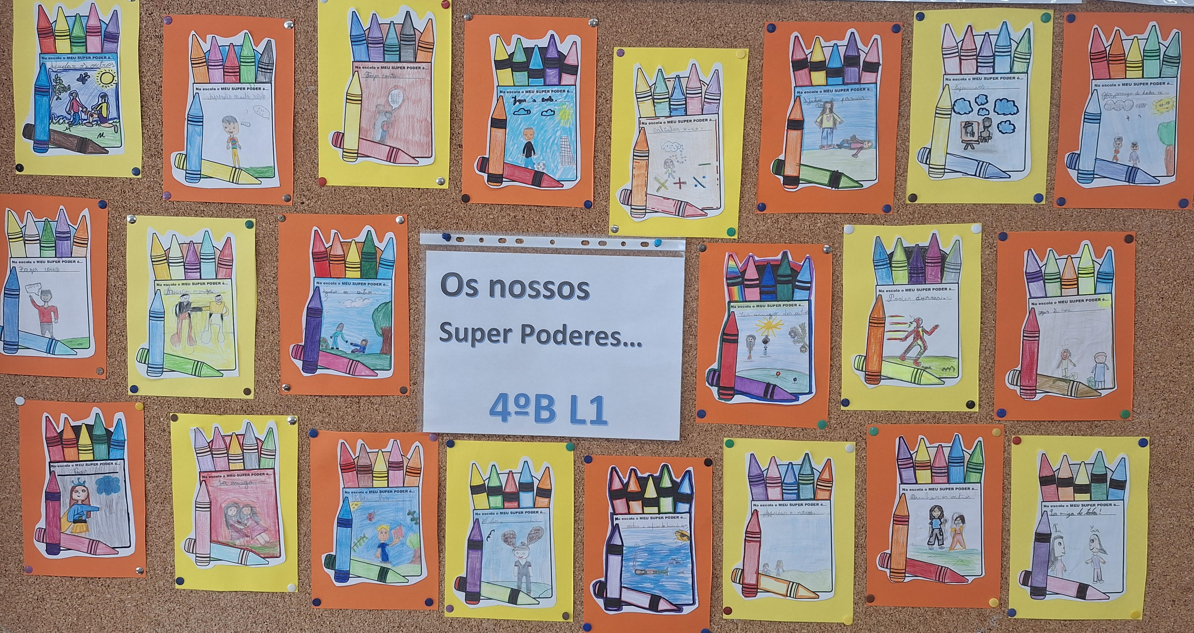 Dentro da sala, pudemos observar o Stitch com atenção e cada aluno fez um desenho inspirado nele. Foi um momento criativo e divertido, onde tentámos representar o seu aspeto, as suas expressões e a tranquilidade com que esteve connosco.