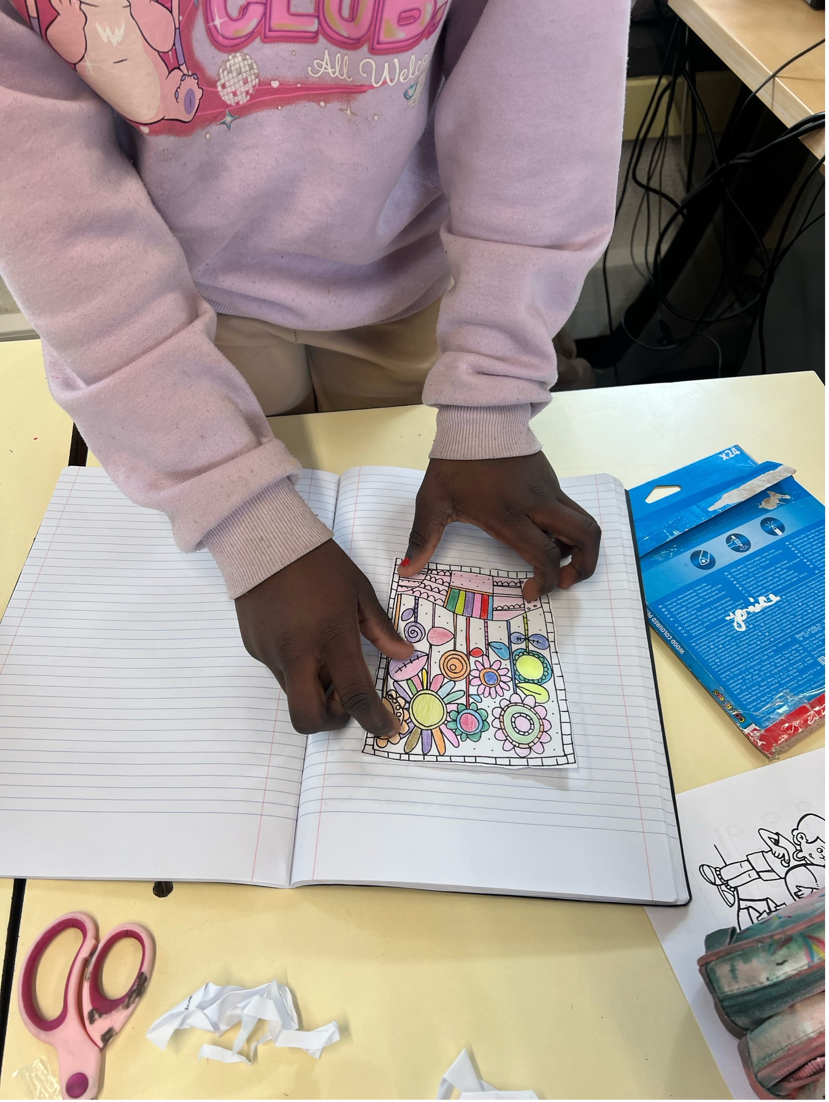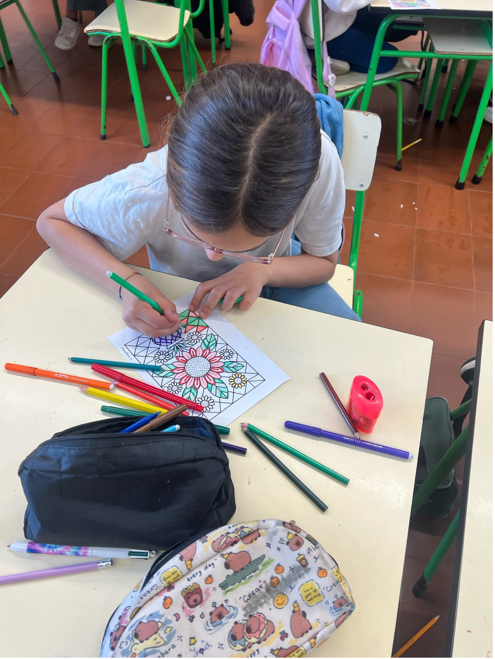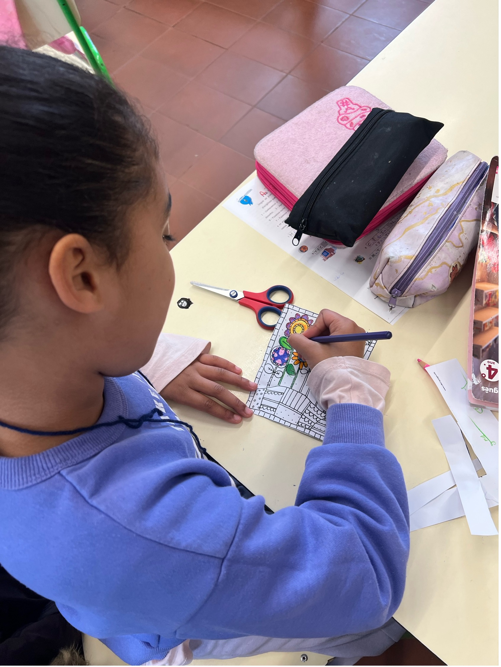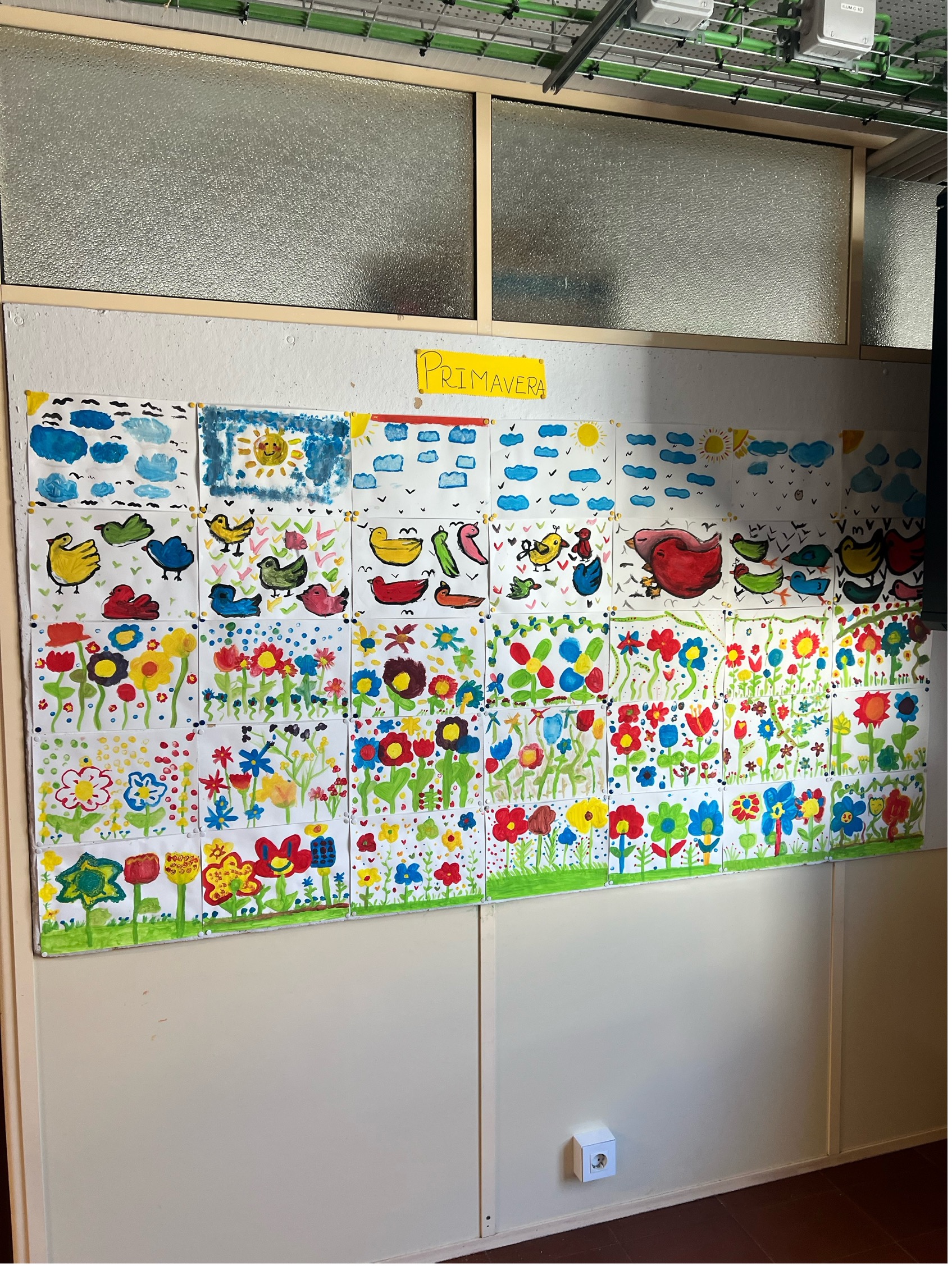 As crianças pintaram desenhos de flores, que foram depois colocados nos seus cadernos como forma de registar esta data especial, bem como expostos na parede da sala, trazendo mais cor e alegria ao espaço. Para além disso, realizaram pinturas com tintas para expor no núcleo de 4.º ano, organizadas como uma espécie de puzzle, com diferentes elementos: numa linha, relva com flores; noutra, apenas flores; noutra, pássaros; e noutra, o sol com pássaros. Foram ainda feitas algumas pinturas apenas de flores para outra parede.