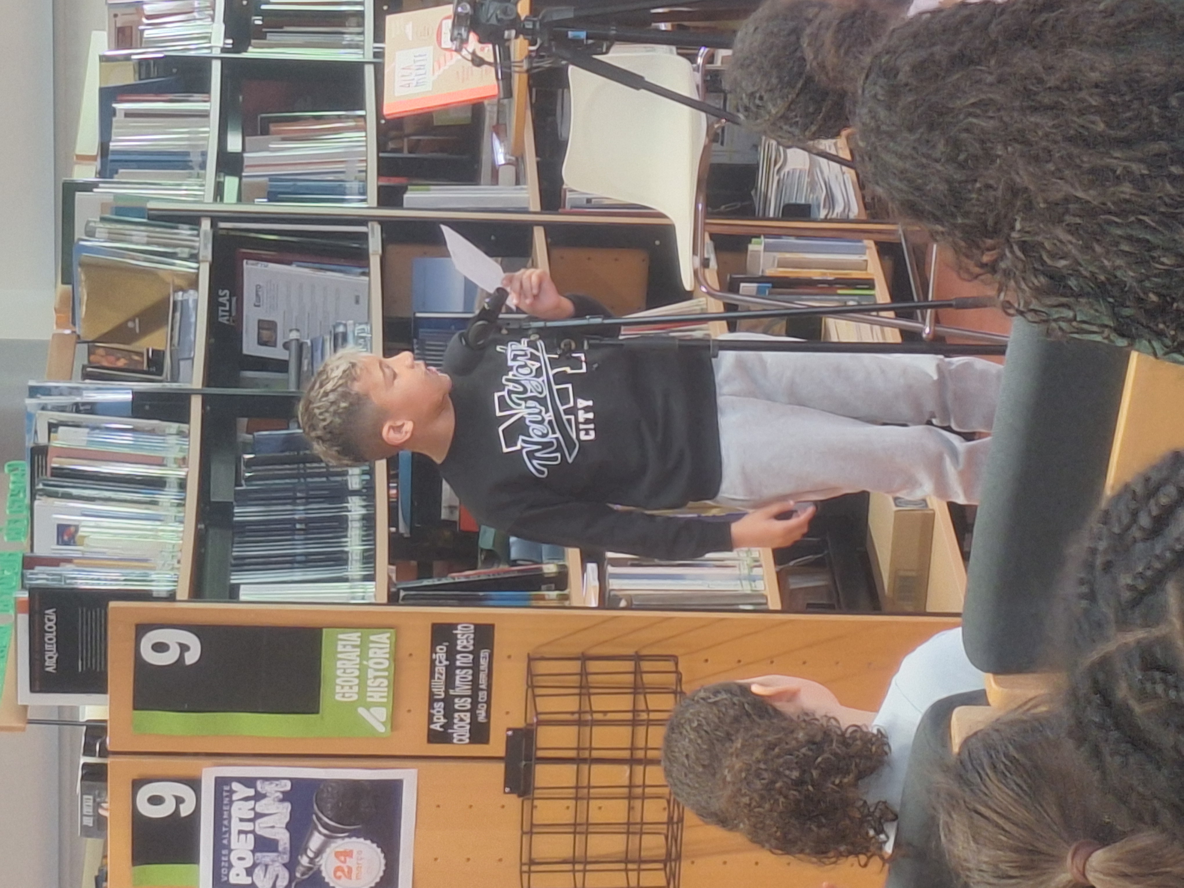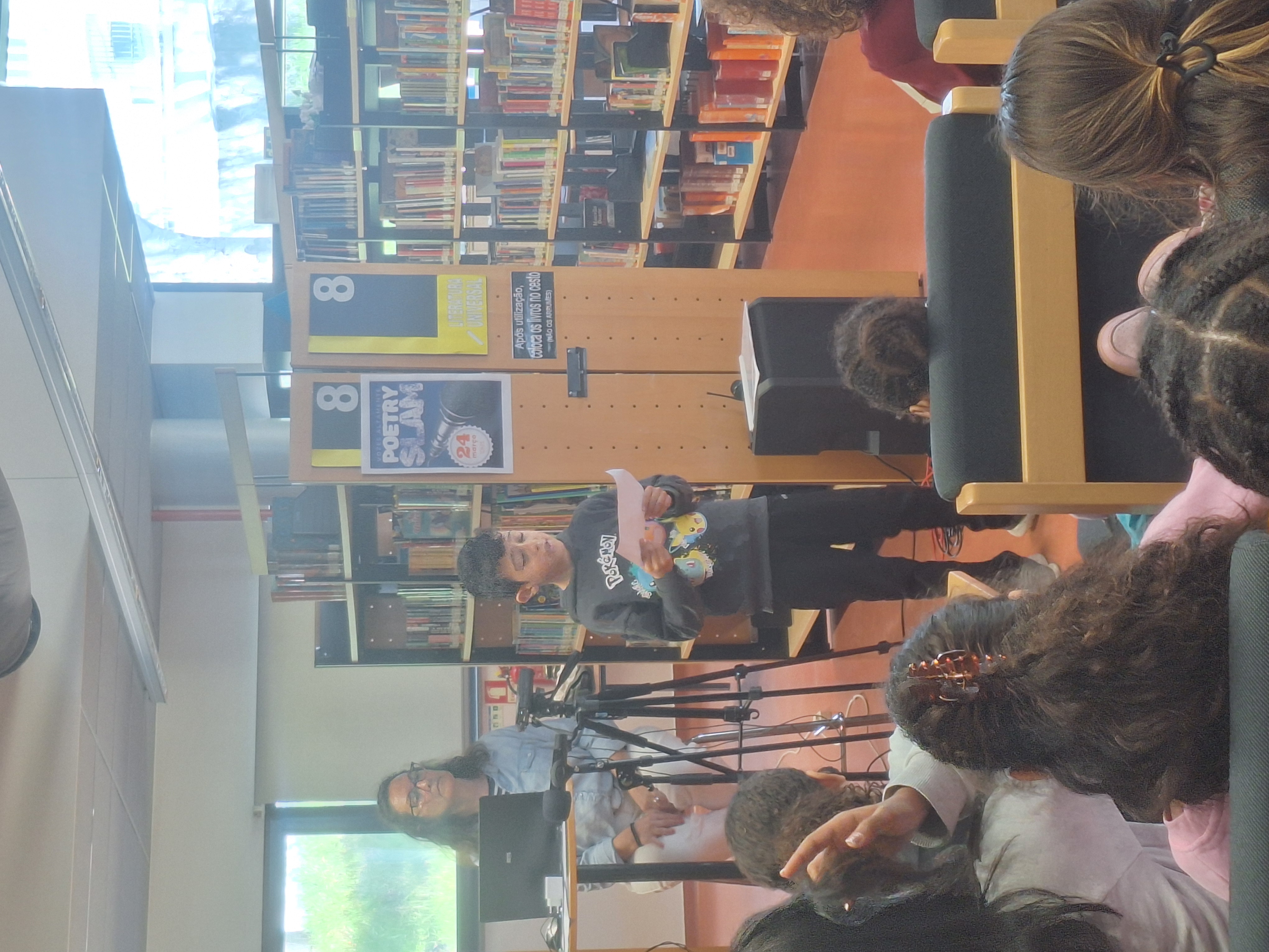 A turma do 4.º B da nossa escola participou no concurso "Poetry Slam - Vozes Altamente" no dia 24 de março na Sede do Agrupamento. Este concurso teve como objetivo criar um espaço de partilha para que os alunos podessem mostrar a competência leitora, utilizando a palavra como instrumento de inclusão e desafio às várias formas de literatura, incentivando a participação ativa na cultura e na vida escolar.