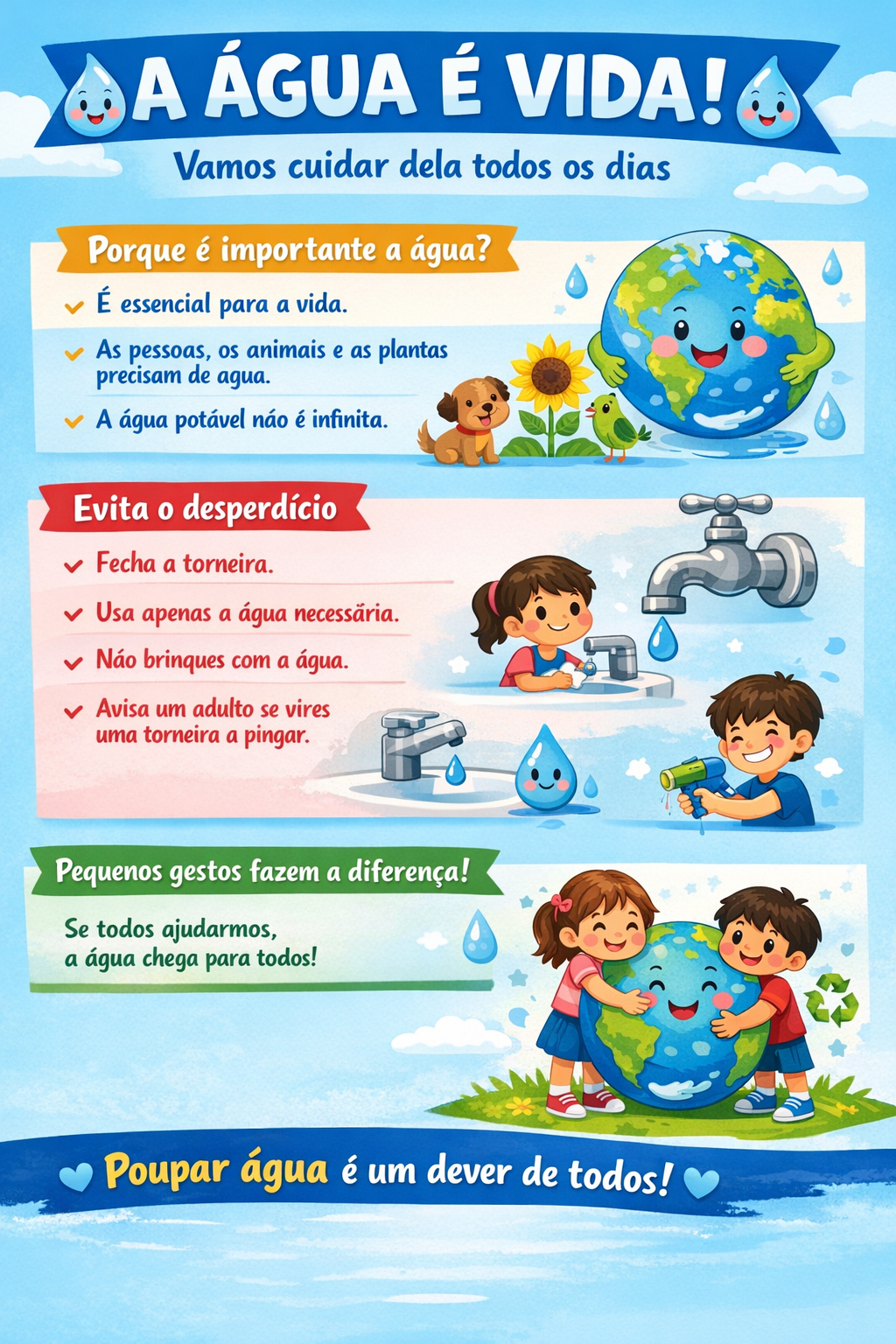 Estas atividades permitiram reforçar a consciência ambiental dos alunos, valorizando atitudes responsáveis no uso deste recurso essencial.
